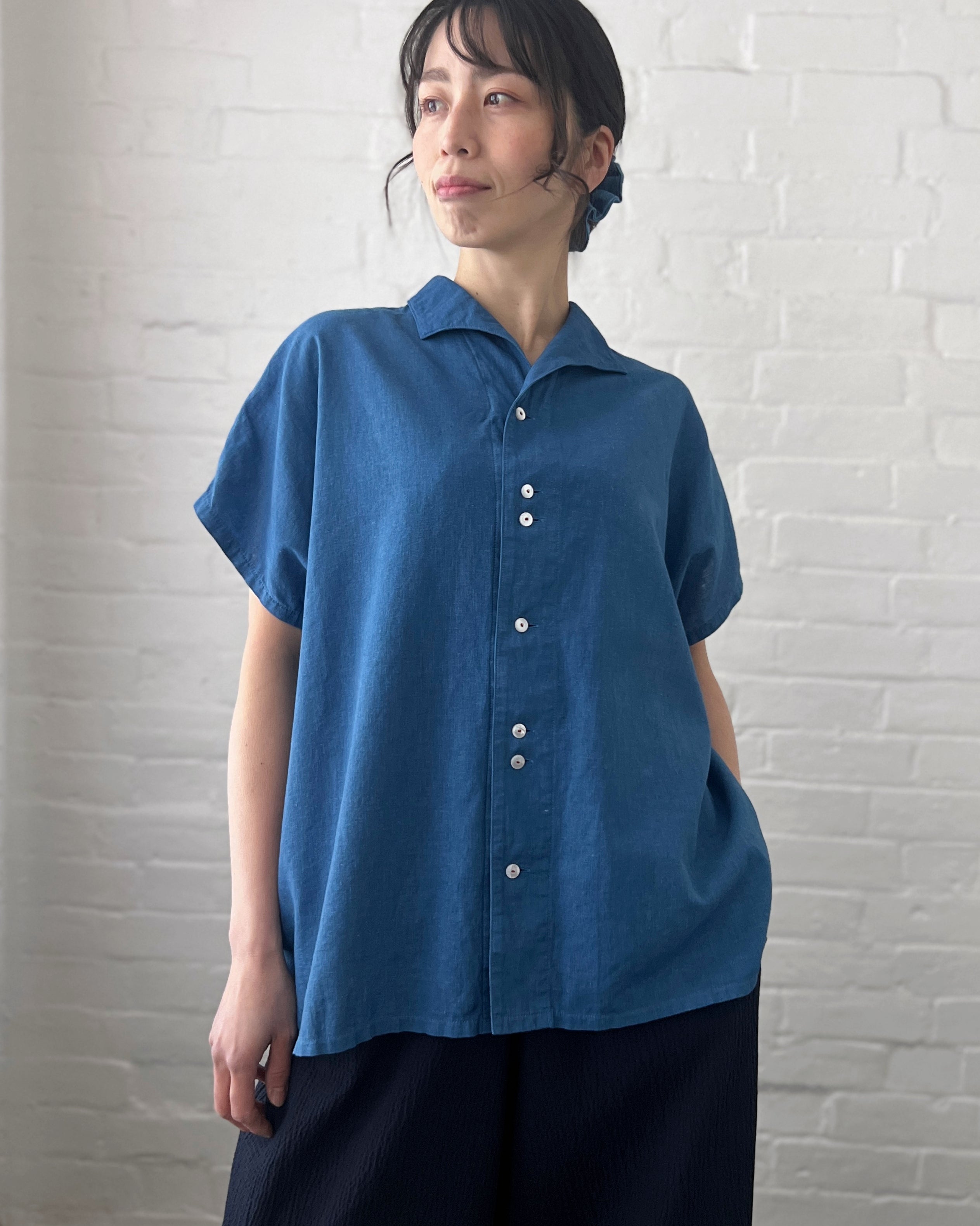 Chizu Blue : indigo dyed short sleeve shirt
