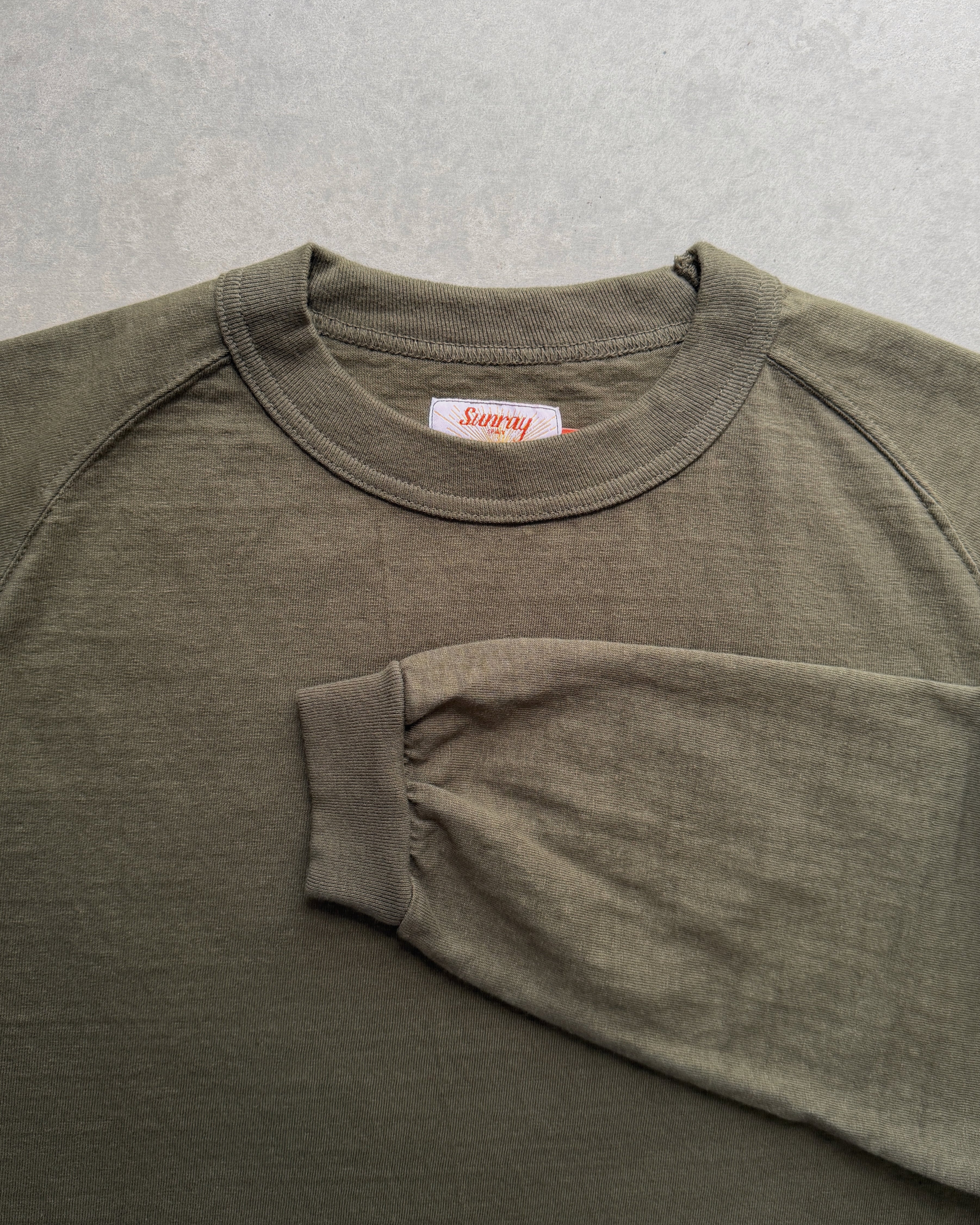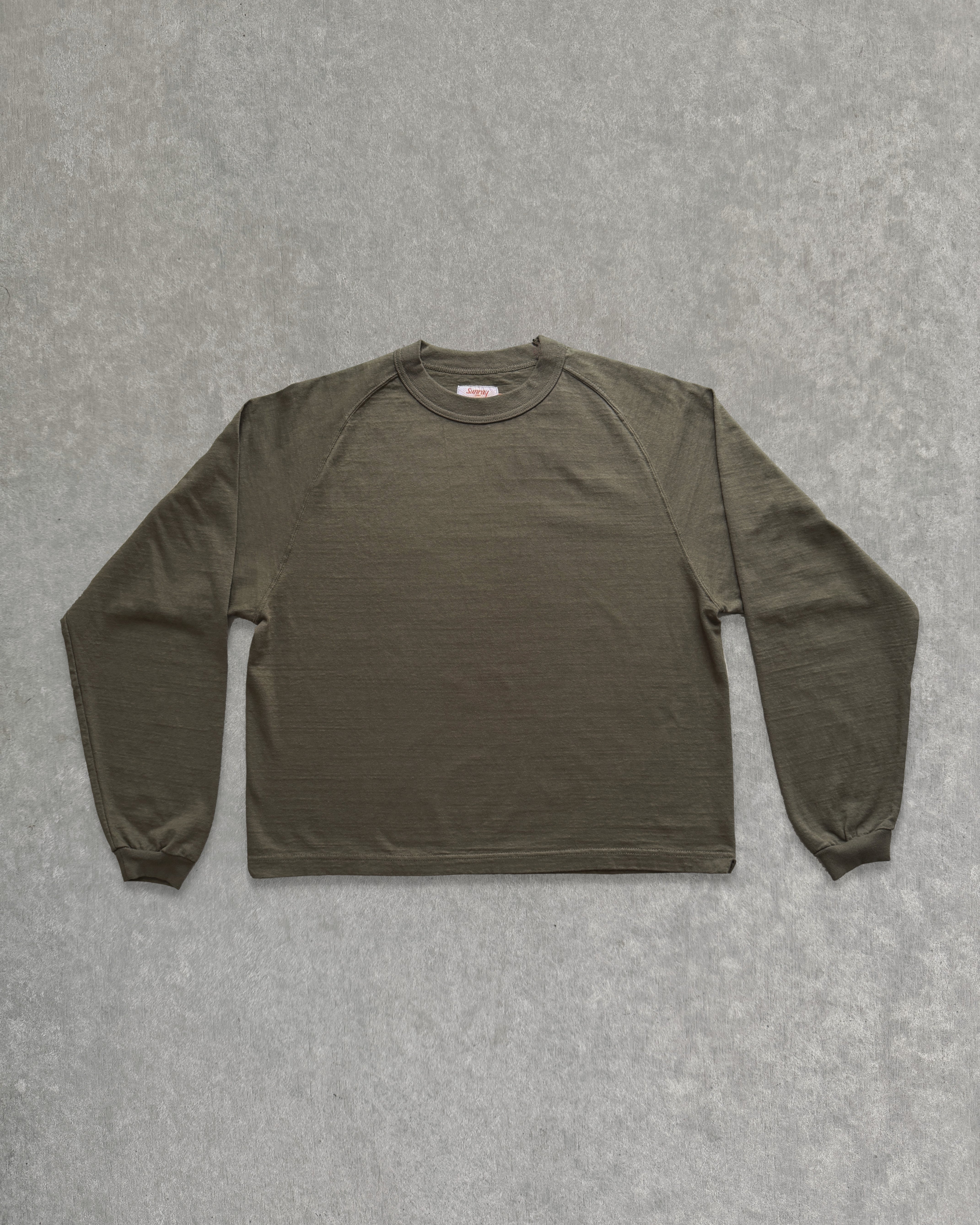 Sunray Spirit : hina reversed fleece crew neck sweatshirt in black olive